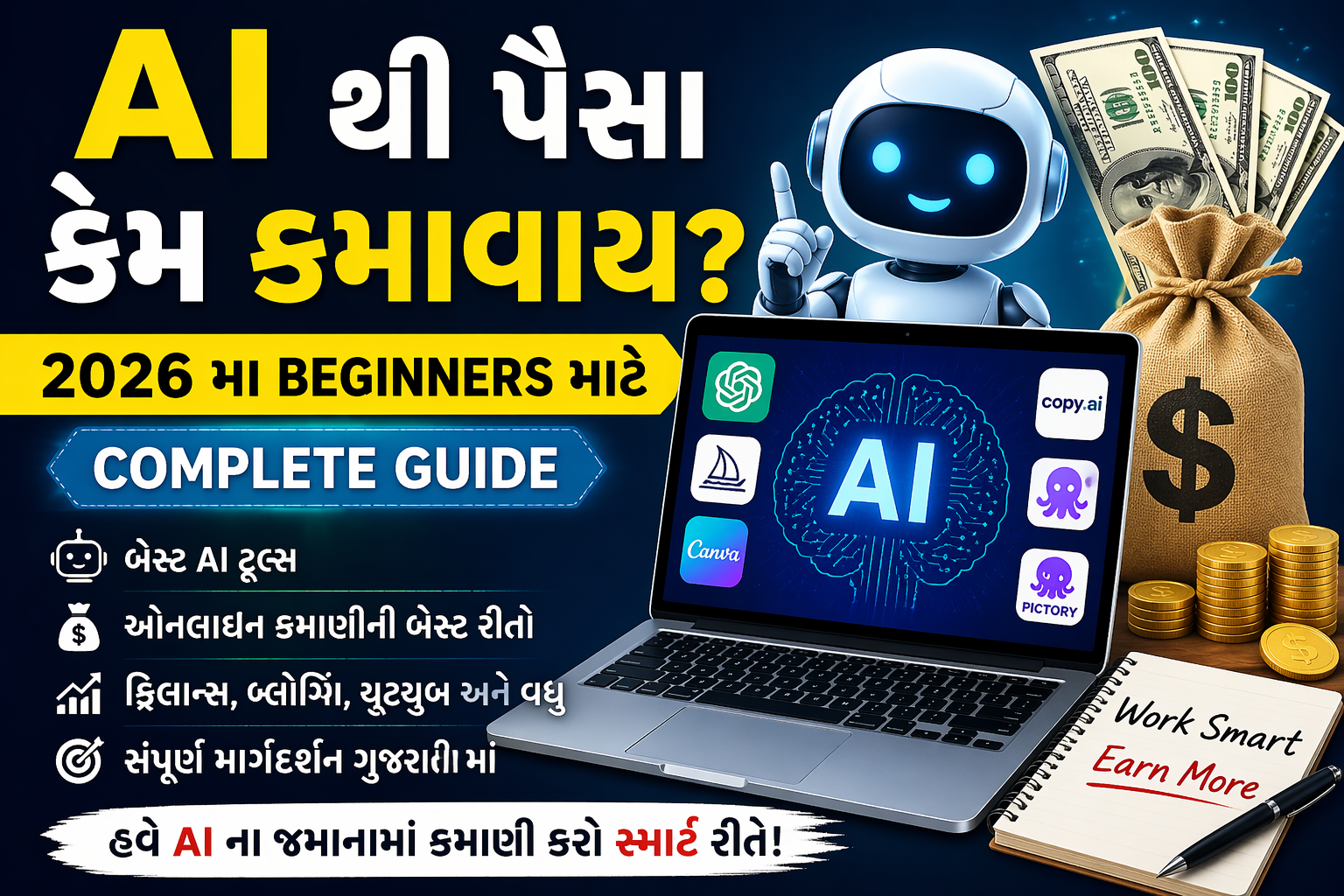 Aa blog ma apde detail ma samjishu ke tame 2026 ma AI no use kari ne kem paisa kamavi shako.